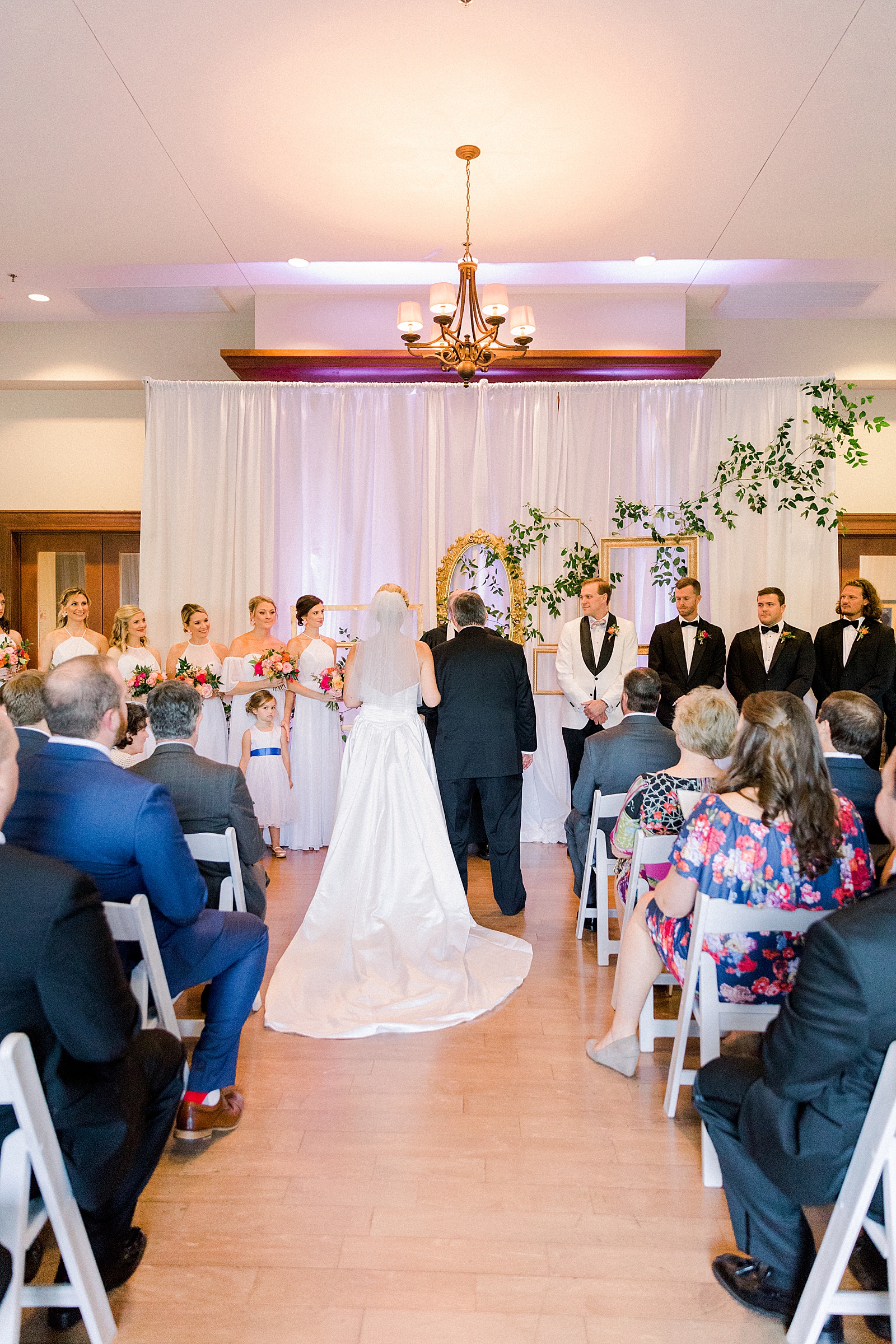 The sentimental touches started with Ann Spencer’s wedding gown. Her mothers gown became her own, slightly modified to remove the sleeves. The sleeves were then used as wrap on her own and each bridesmaids bouquets. Austin wore cufflinks gifted to him by his late mother that were presented by his father. He continued to carry on his mother’s legacy by carrying a single pink flower and placing it on the chair that would have been hers. Beautiful, meaningful and full of love, just like a wedding should be.