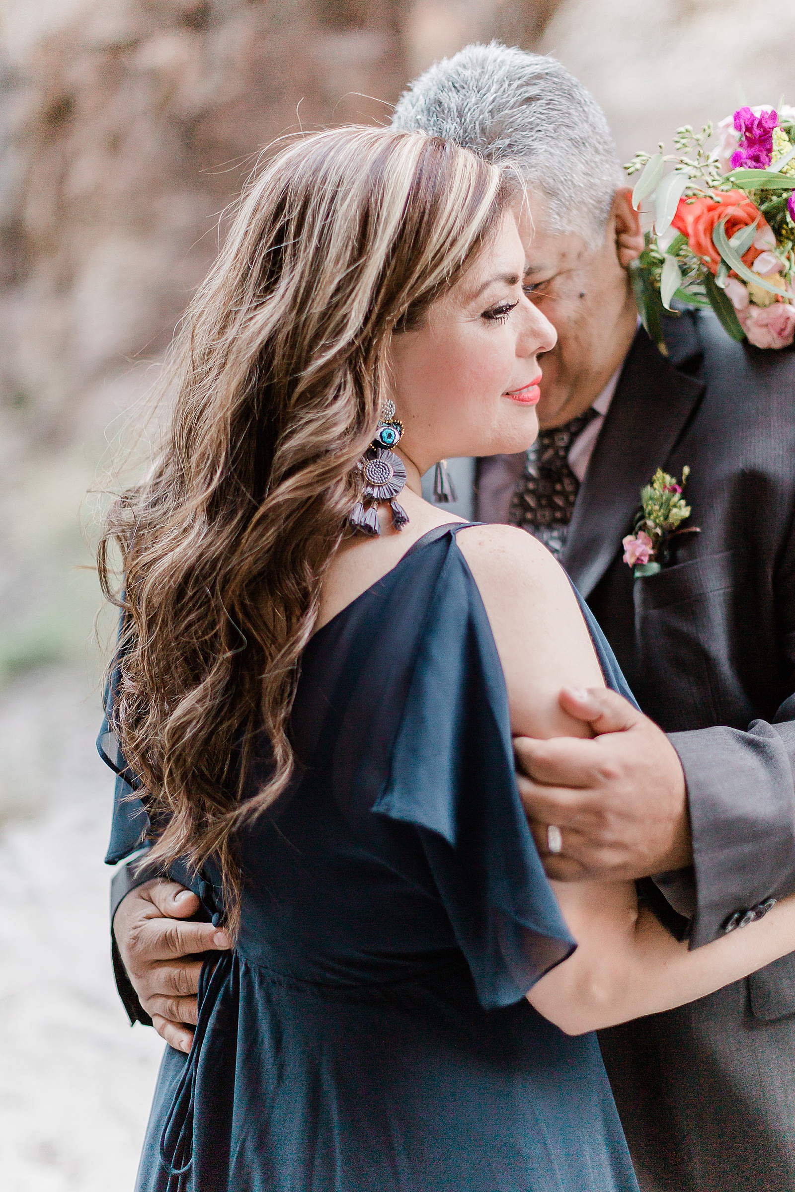 The concept behind the shoot was to celebrate love 28 years in the making. A private dinner getaway for 2, a romantic tablescape to talk and remember all the times they’ve spent together. Cozy throws and pillows to relax into. The macrame hanging behind their table lended itself to creating an intimate atmosphere in the middle of a giant canyon. Augustin and Gricelda shared some of their favorite stories, danced in the middle of a a canyon and demonstrated the power of true love!