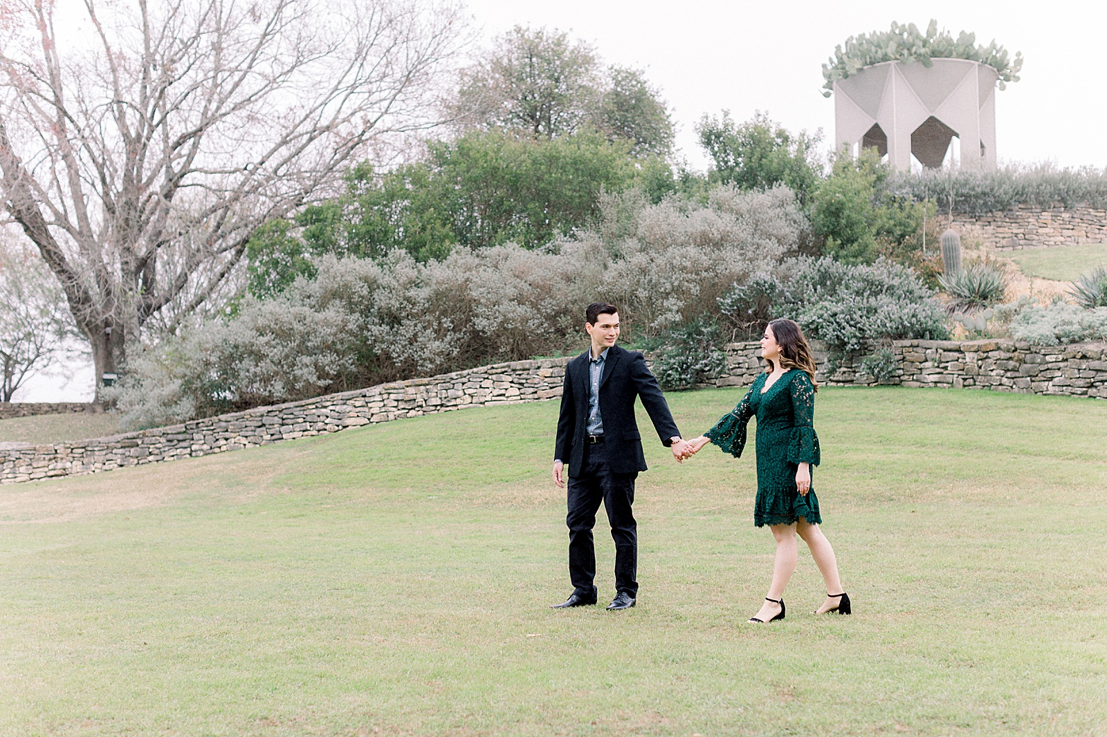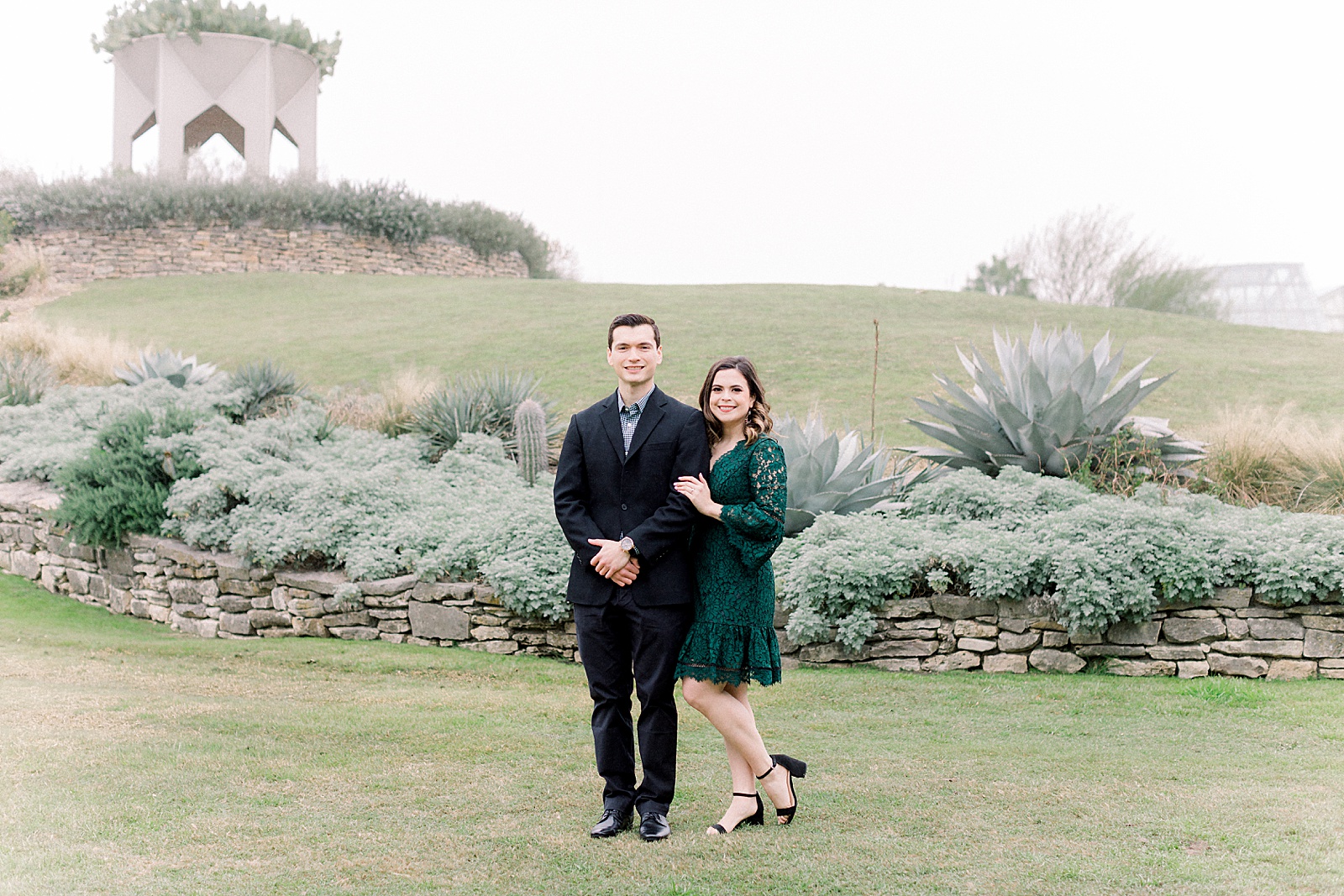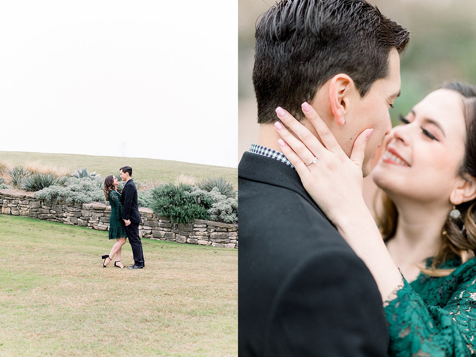 On a cold and rainy day in San Antonio, an engagement session at the botanical gardens is the way to go! I think you’ll agree after looking at Angelica and Sergio’s photos-it’s hard to tell it was a less that “perfect” day! Angelica was absolutely beautiful in her lace green dress and Sergio was so handsome with his black suit! I love it when couples dress up for their engagement photos, after all, you only get to do them once!