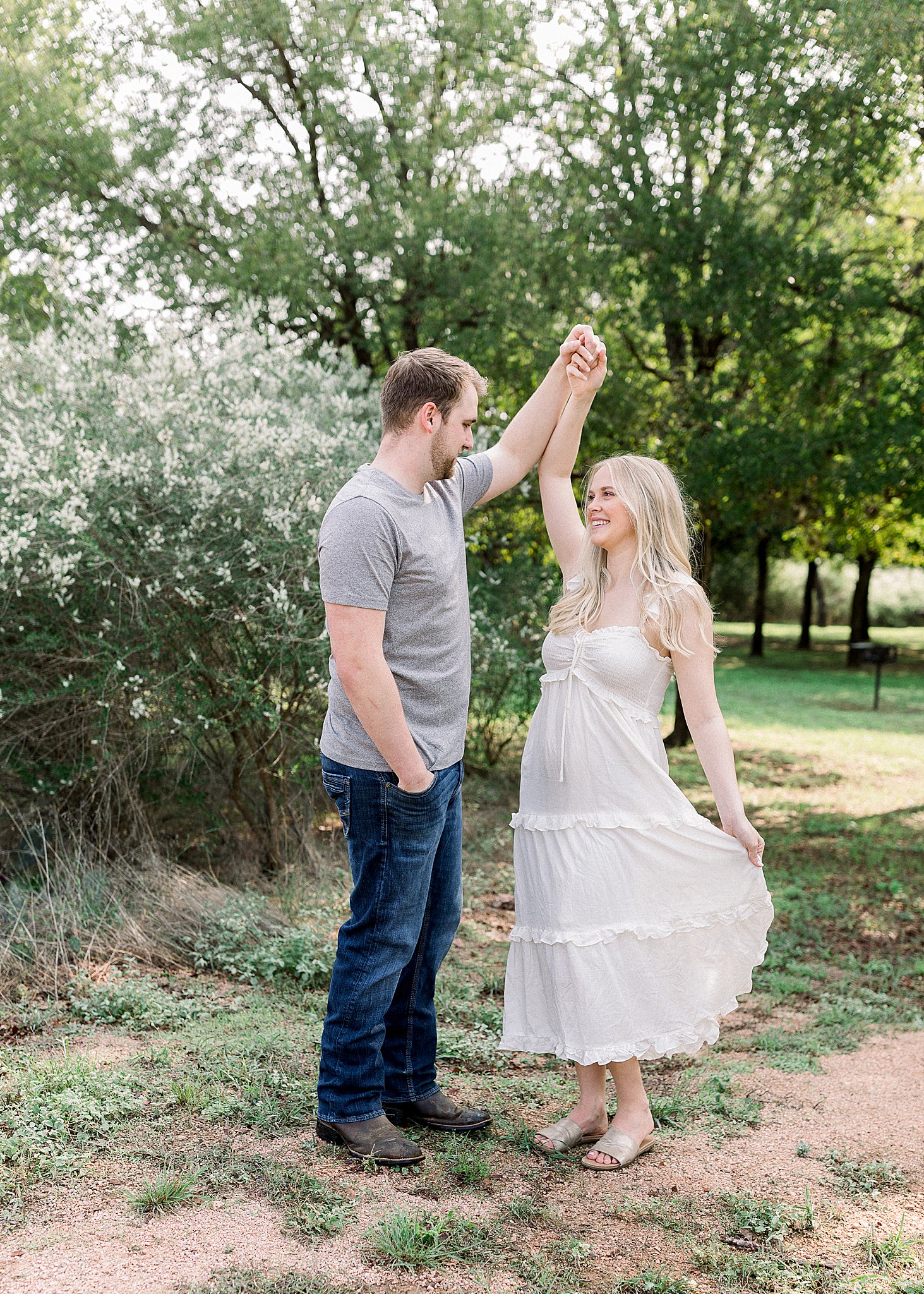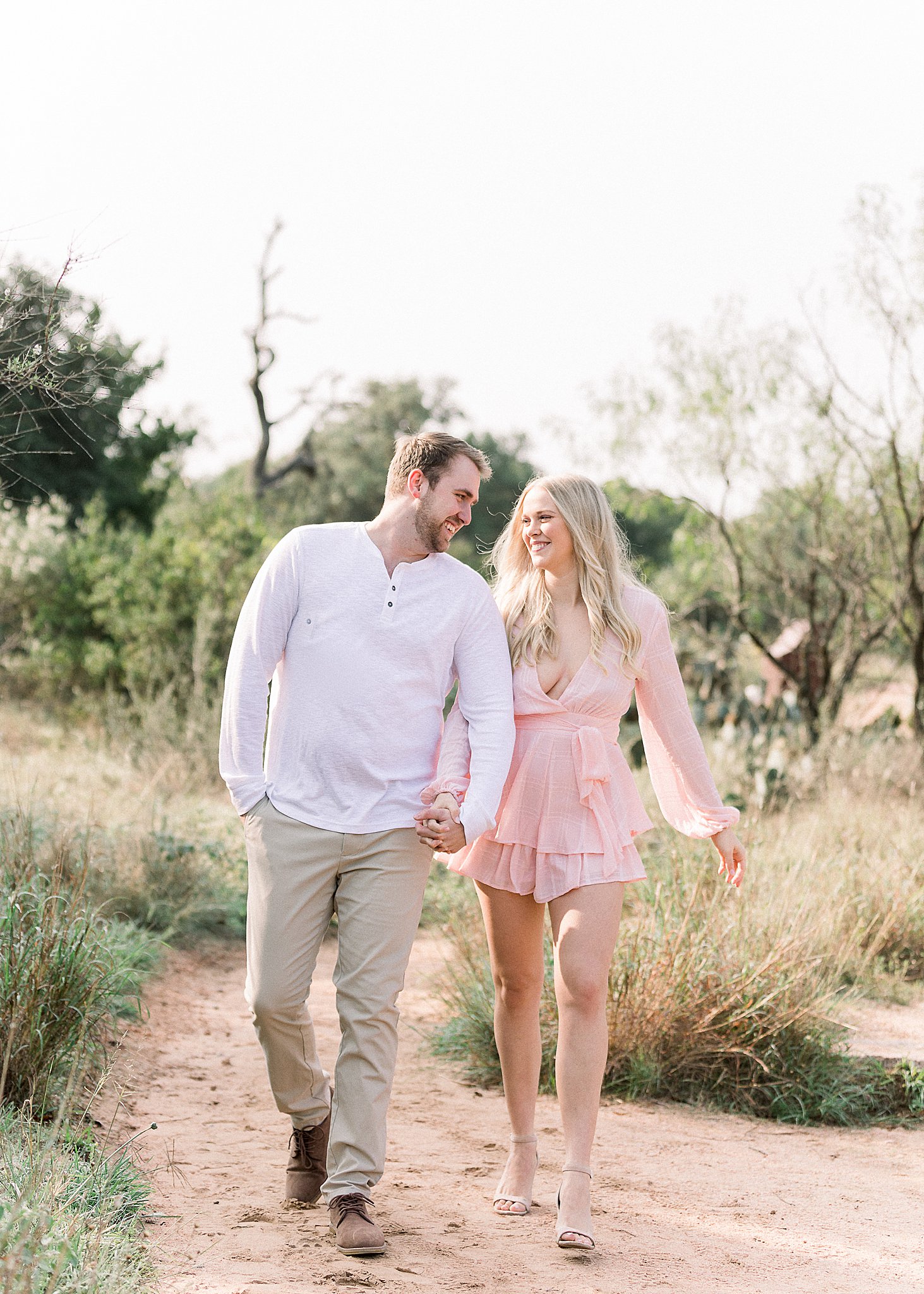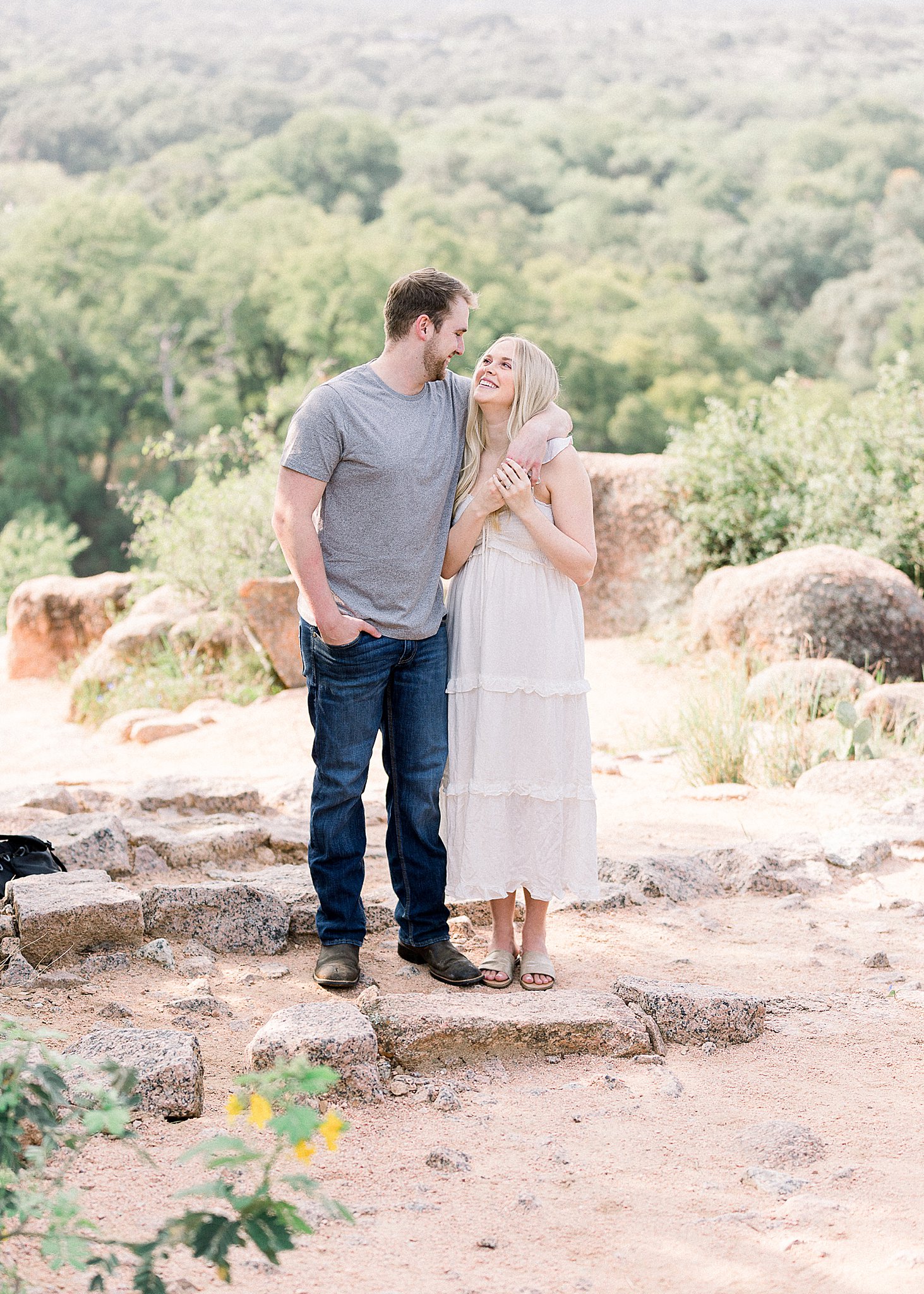 Lexi had mentioned she wanted their session to feel fun and lighthearted. Their outfits were perfect for this, and her second dress even let us get some fun swishing in (always my favorite)! Brandon kept it casual but still put together and their light/neutral color palette photographed beautifully against the Enchanted Rock landscape.