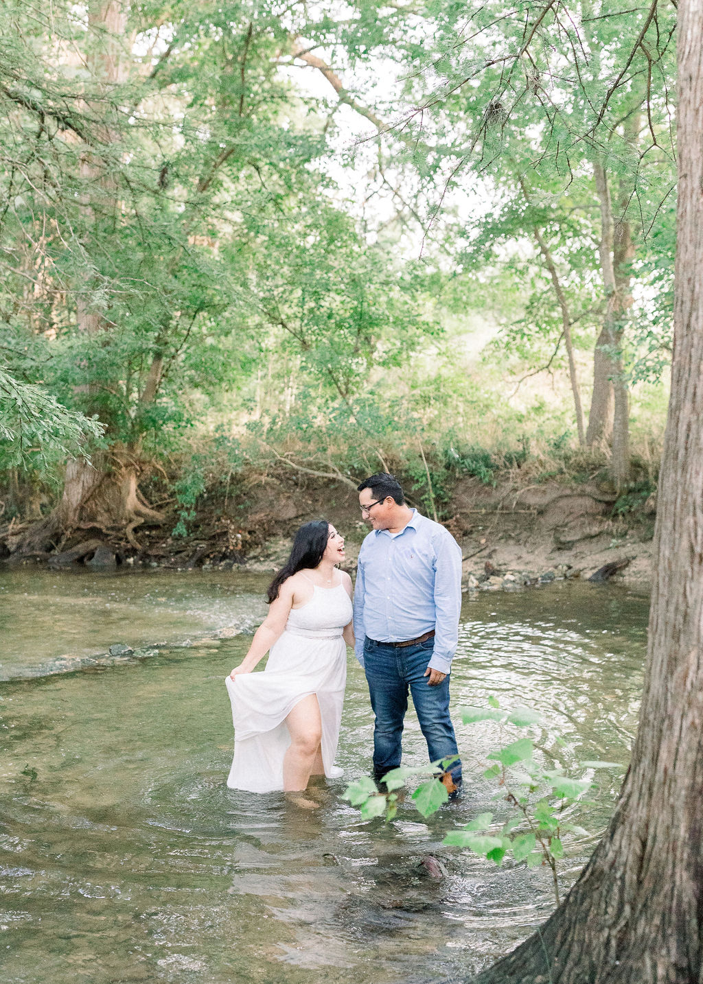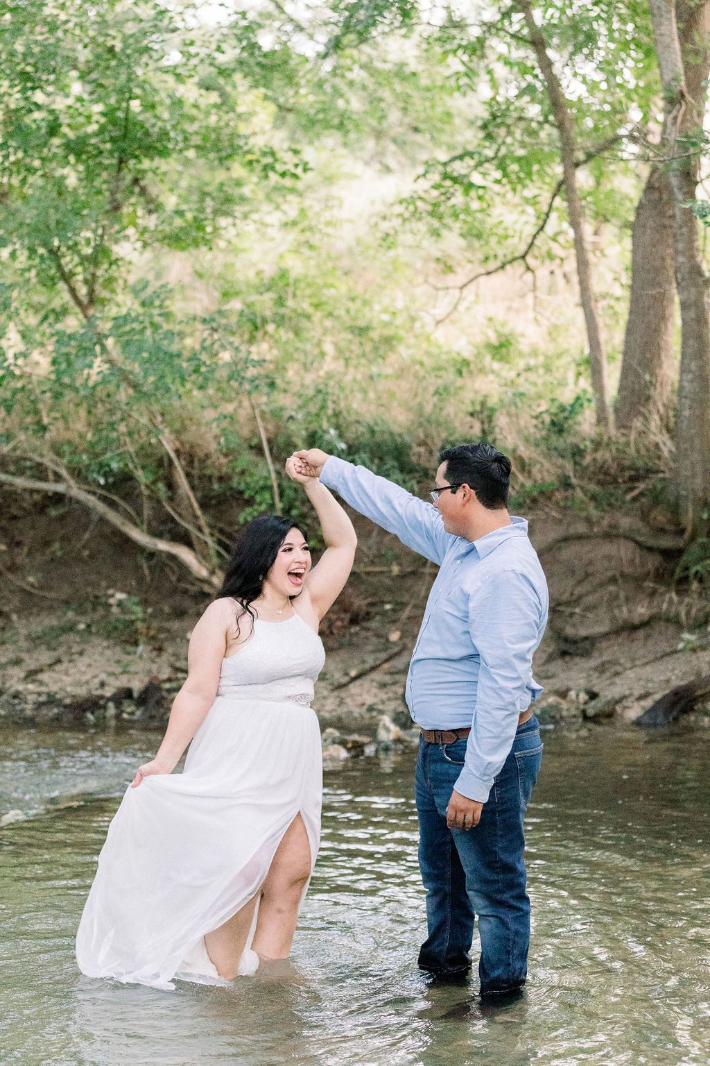 Andrea and Angel were so fun to photograph as they were clearly in love! And, after months of phone calls talking about their wedding day, it was just awesome to meet them in person! When planning a session at Cibolo Nature Center, I always ask-are you going to get in the water? Usually people say “Yes” and it makes my heart so happy! This means that our session will start in the gorgeous fields and work our way back to the creek so your outfits can get wet at the end! PS-not sure what to wear? I’ll send you a guide and I’m always here for screenshots and planning! And cozy blankets + champagne are always welcome!