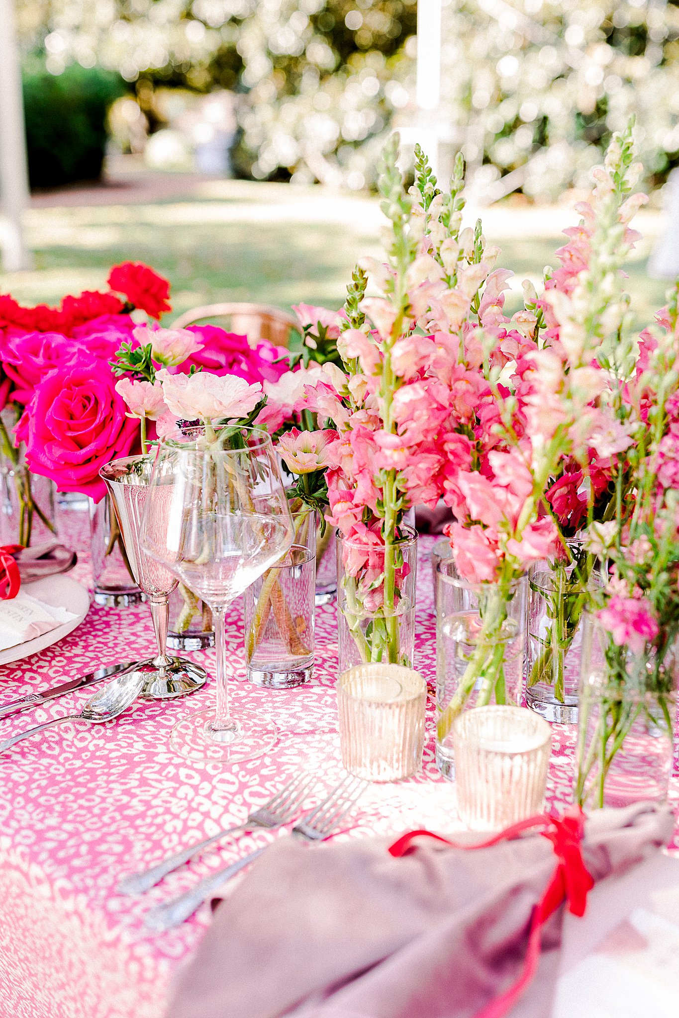 With minimalist tableware, the bright pink and patterned table linens were able to steal the show. Striking a balance of elegance and fun can be challenging, but Pearl Events pulled it off perfectly!
