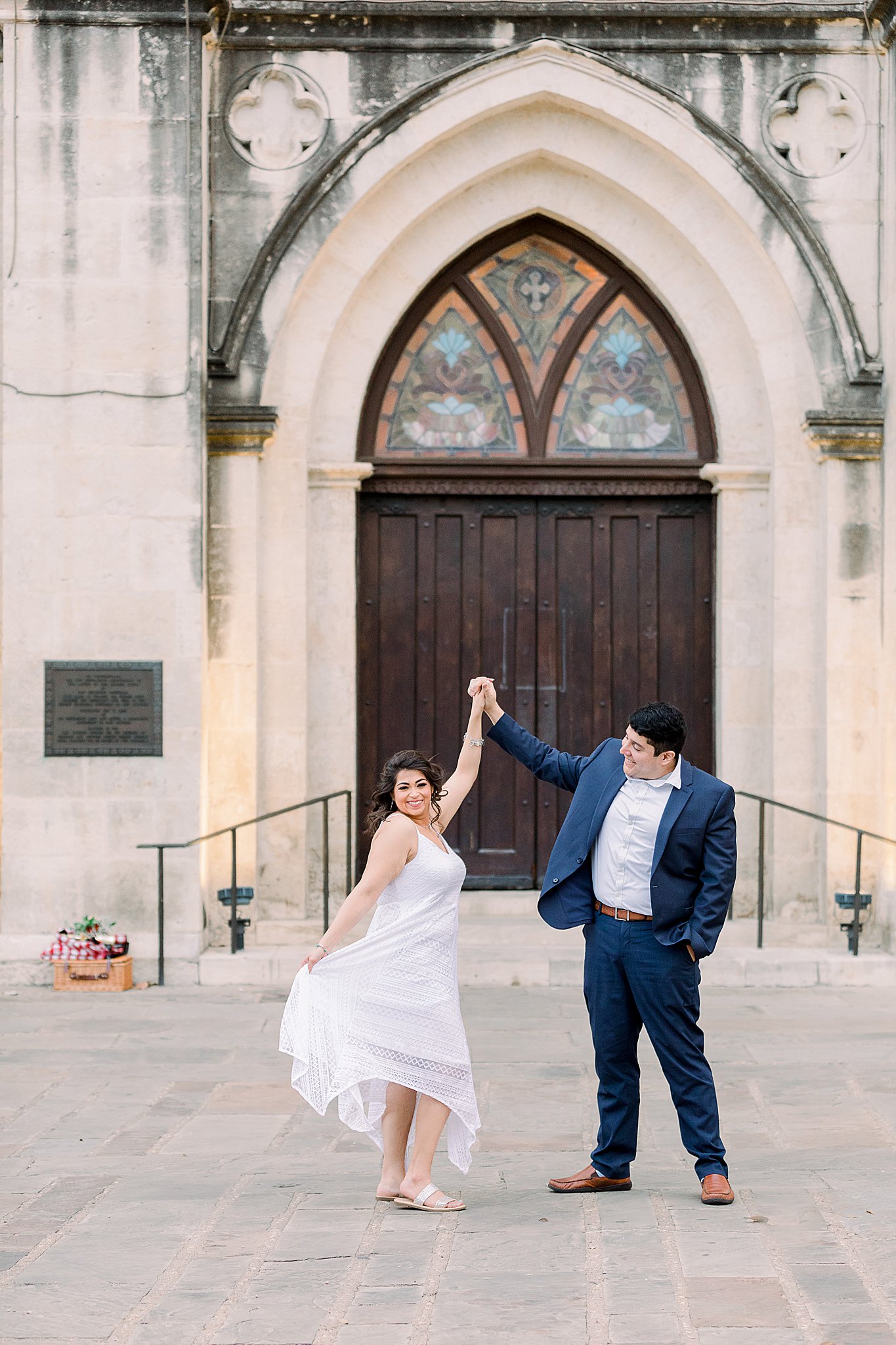 Their San Fernando Cathedral engagement session was an absolute dream. The soaring cathedral with intricate architecture and the old world romance make it the perfect spot to capture love stories. On the pavilion in front of the church, there is room for practicing your first dance, enjoying the summer vibe of San Antonio, and appreciating the fountains nearby.