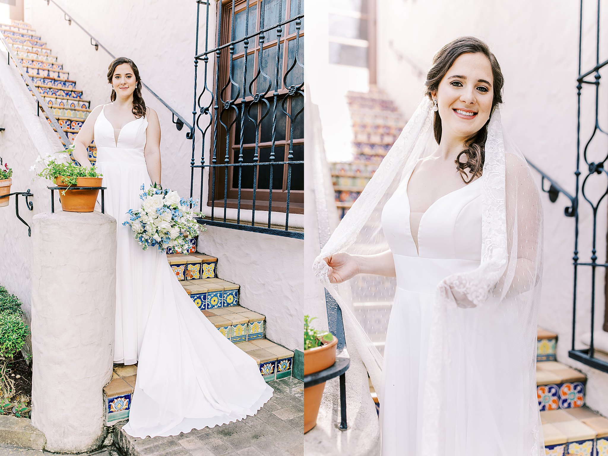 It’s no secret that McNay Art Museum bridal portraits are a sought-after experience for San Antonio brides. This evening with Fontaine, featuring the McNay courtyard and famous Spanish steps was the quintessential bridal session.