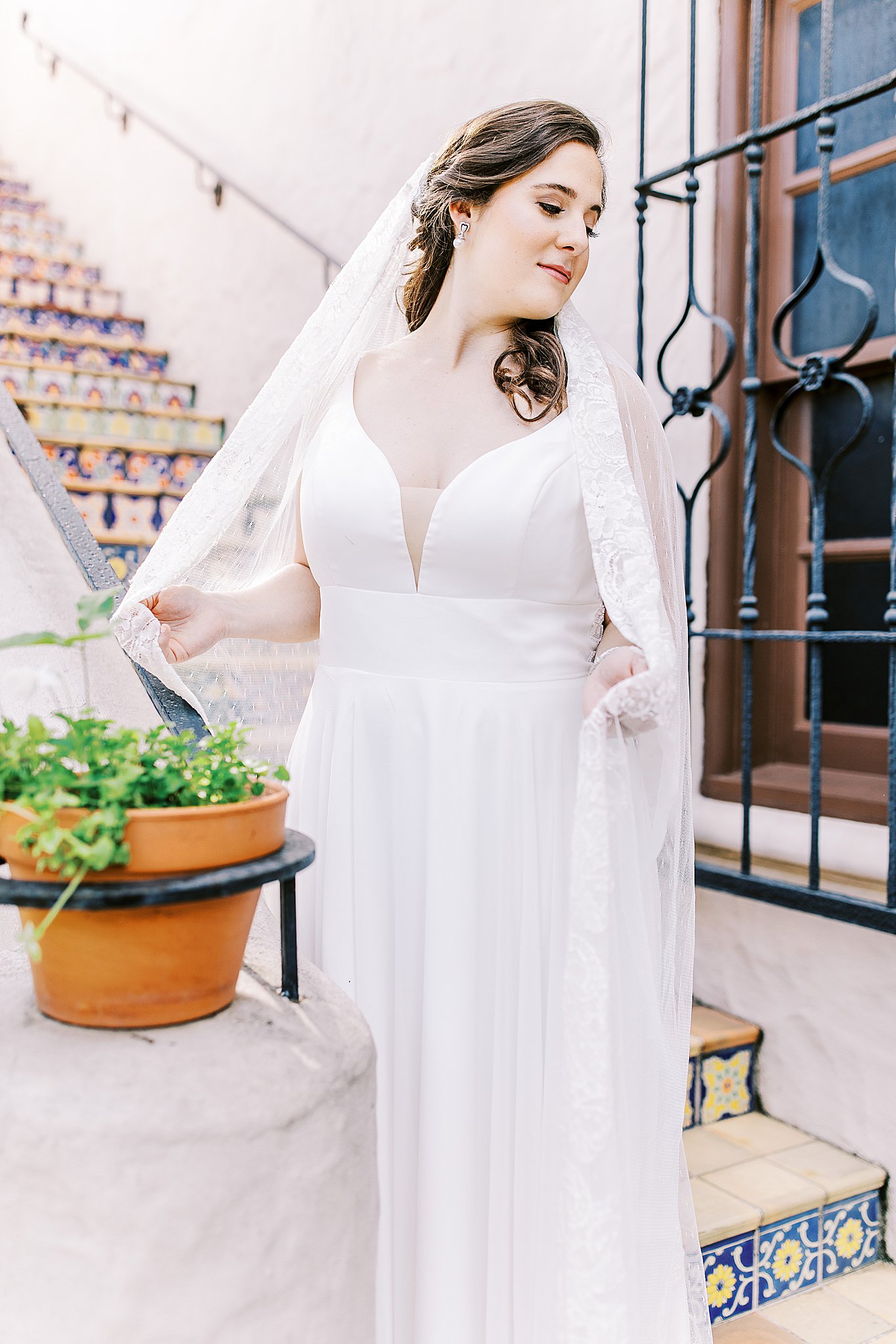 My favorite part of this McNay Art Museum bridal portraits was learning about Fontaine’s veil. Her family was an early Texas family and the veil had been passed down to brides in the family since the 1800s. When the original veil became too delicate to handle, the family sent it to a boutique in London to have a replica made. A someone who loves family heirlooms, this story made me a little teary-eyed.