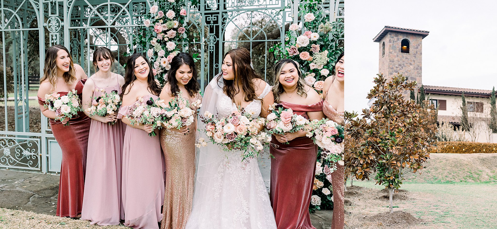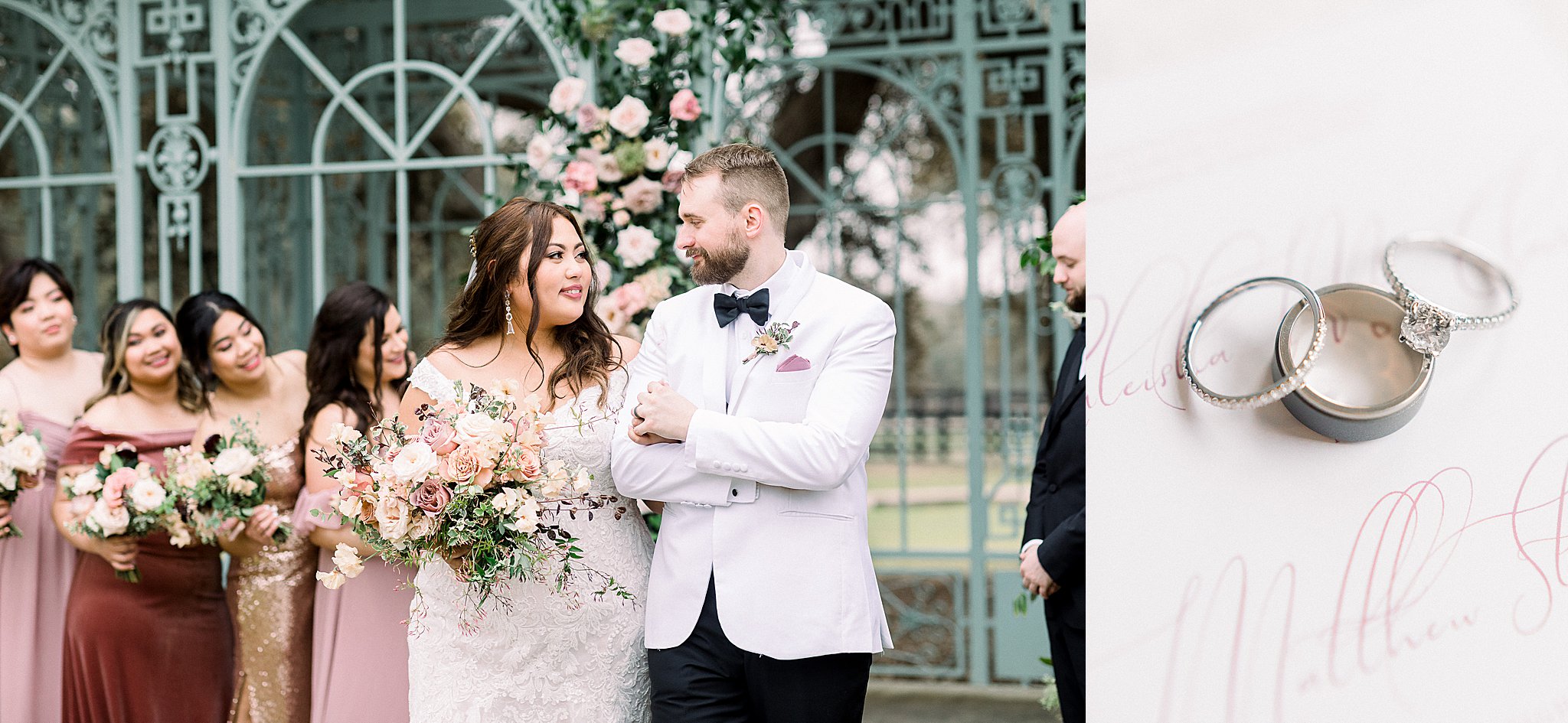 Like so many couples, Raleisha and Matt had their wedding planning affected by the pandemic. Finally, their Ma Maison spring wedding came to life in late February on a beautifully overcast day. The clouds might have been unwelcome at first, but they created such a romantic feel to the whole property that by the end of the day, they were appreciated. The famous mint green Ma Maison “birdcage” was adorned with flowers from Remi and Gold and just looked ethereal!