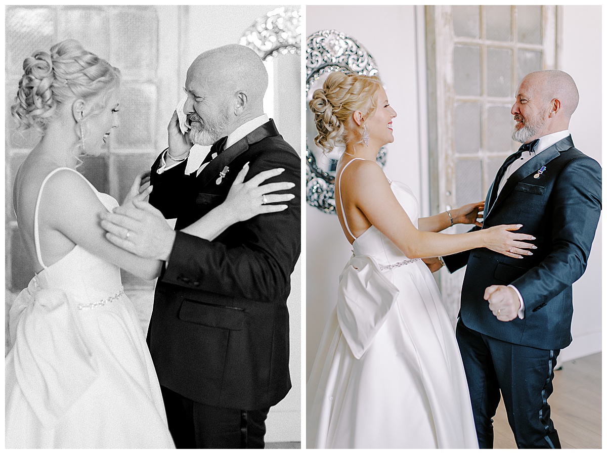 The incredibly touching, tearful first look shared between Emily and her father. This heartwarming moment perfectly captured the unconditional love that exists within a family, and it was an honor to freeze this emotional connection. It reminded everyone in attendance, that weddings are about the union of two individuals and the bonds and memories that families hold dear.